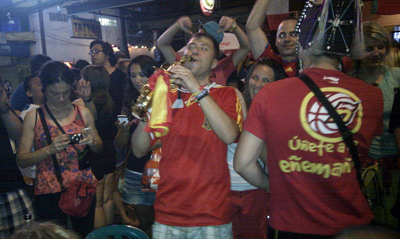 Die Clowns sind meistens wir selbst. Vorallem im Spanischunterricht. „Hola, me llamo Nicola, no entiendo nada“. „Soy Oliver, a ver, a ver, a ver“. Eine Woche war geplant, ein Morgen wurde es. Danach weicht der Spanischunterricht dem Ausschlafen. Denn wir rocken die Bühne bis zum Sonnenaufgang. Und das gleich zwei Wochen lang. Bereits am 2. Morgen kommt Collos Travelbox zum Zug. "Me duele la cabeza"