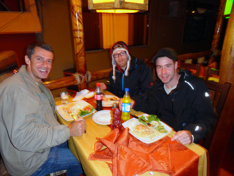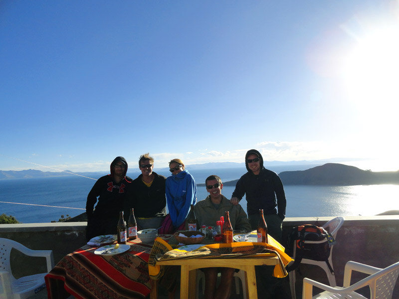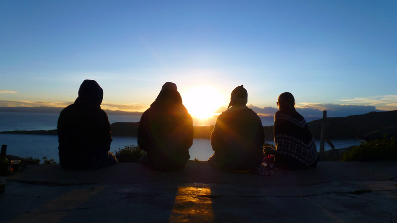 Wenn wir gewusst hätten, dass wir mit dem ganzen Gepäck ca. 800 Treppen auf die Isla del Sol laufen müssen, hätten wir wie unser Freund Sam aus Brasilien ein Hostel am Strand ausgewählt. Spätesten hier haben wir uns entschieden den Machu Pichu nicht hochzulaufen. Schliesslich sind Wir ja in den Ferien! Mächtig geschafft erreichen wir auf dem Gipfel unser Hostel. Kalt Wasser, keine Spülung, Standard eben. Das Nachtessen mit frischem Fisch auf der Terrasse war jeden Treppentritt wert. Die Aussicht aufs Meer mit den Inseln bei Sonnenuntergang ist majestätisch. Wir trinken noch gemütlich Wein mit einem herrlichen Sternspektakel bevor wir uns ins Bett legen.